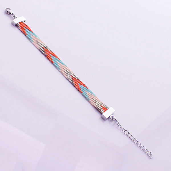 Measuring 6.7 inches in length with a 2-inch extender, the Miyuki bracelet is secured with a silver-filled slide bar clasp.