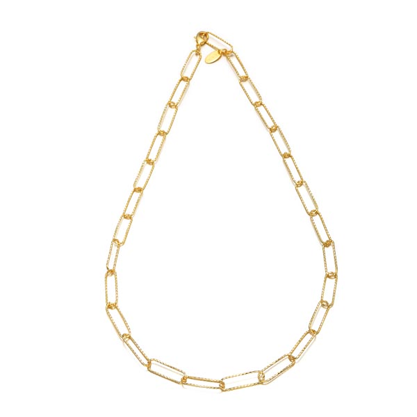 Combining the simple charms of long link chains and our artisan’s refined handcrafting skills, each interlocking chain link is made from the finest brass material plated with luxurious 18K and 14K gold.