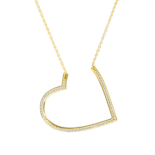 This eye-catching necklace for her showcases the iconic Open Heart by our in-house designer design crafted in sterling silver. Radiating with lustrous 18K gold Vermeil and a sparkling circle of cubic zirconia gemstones in a slanted open heart charm, the Sterling Silver Gold Plated Cubic Zirconia Open Heart Necklace creates the perfect feminine style. The open heart pendant hangs delicately on a 17.72-inch chain with a 2-inch extender, the chain is secured with a lobster clasp.