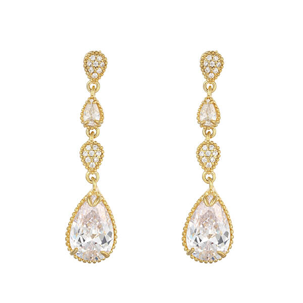 Well-crafted and beautiful Cubic Zirconia Drop Earrings features delicate micro-pave halo CZ gems cascade gracefully into a brilliant teardrop. These gold-plated sterling silver earrings are crafted with the finest quality Cubic Zirconia for the sparkle of fine jewelry. Each CZ is meticulously cut with the precision used to finish fine diamonds. With a gracefully flowing silhouette and a bevy of gleaming CZ, her every move will light up the room with a breathtaking silver glow!