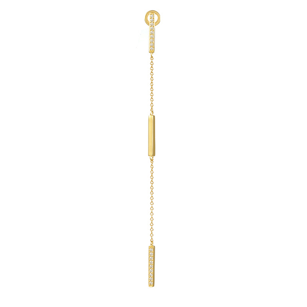 Featuring a delicate link chain dangling in a dramatic 3.57-inch drop and three vertical bars with cubic zirconia stones shimmering in a linear row above the bars. Hand-crafted using luxurious 18k gold vermeil sterling silver and quality friction backs that hold them securely in place, the shimmering Sterling Silver CZ Drop Earrings will ensure maximum brilliance for any special event!