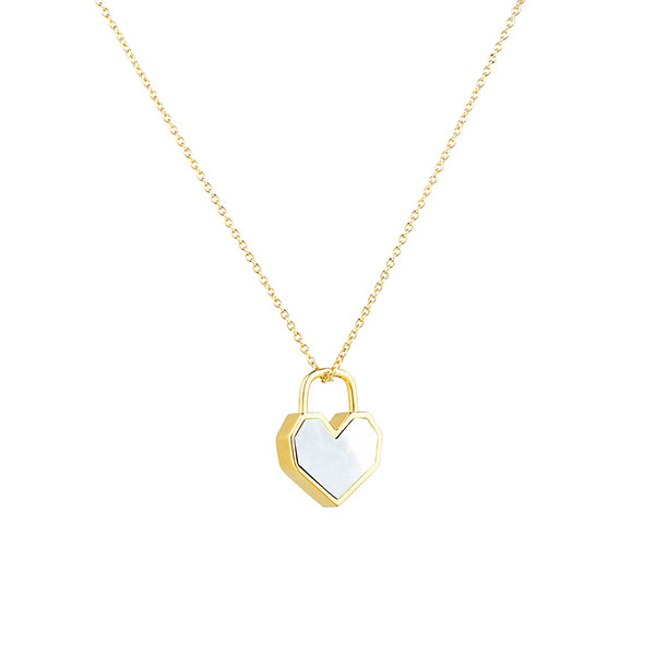 Craft in luxurious 18K Gold Vermeil sterling silver, this playful heart pendant sterling silver necklace features our iconic heart lock crafted from natural White Mussel. The lovely heart lock pendant measures 0.48″ L x 0.43″ and suspends along a dainty 17.72-inch chain that secures with a lobster clasp. This classic Sterling Silver Necklace White Mussel is a perfect mix of elegance, confidence, and femininity! Consider layering it with our sterling silver bracelets or let it shine on its own!