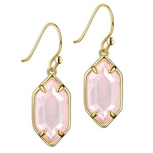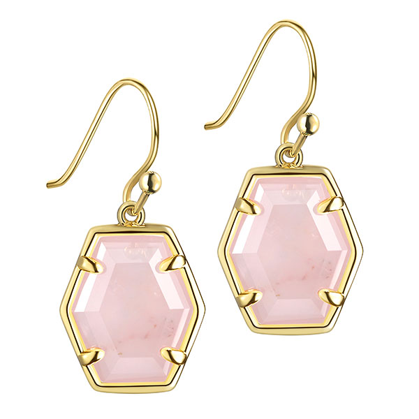 Handcrafted sparkling Rose Quartz Gold Drop Earrings feature a natural Rose Quartz in a bezel on dainty 18K gold-plated hoops. The signature hexagon shape makes this necklace both a true classic and recognizably artisanjewelry.