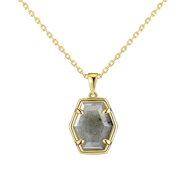 A combination of an elegant and natural look, featuring a hexagon-shaped Natural Gray Labradorite stone on a delicate 18K Gold Plated chain. Classic thick gold–plating provides a durable and shiny appearance.