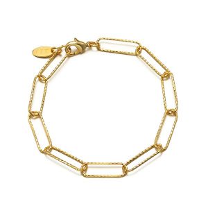 Made from the finest gold-plated brass, this necklace features a combination of two smaller link chains and a larger link chain to create a stunning piece of jewelry.