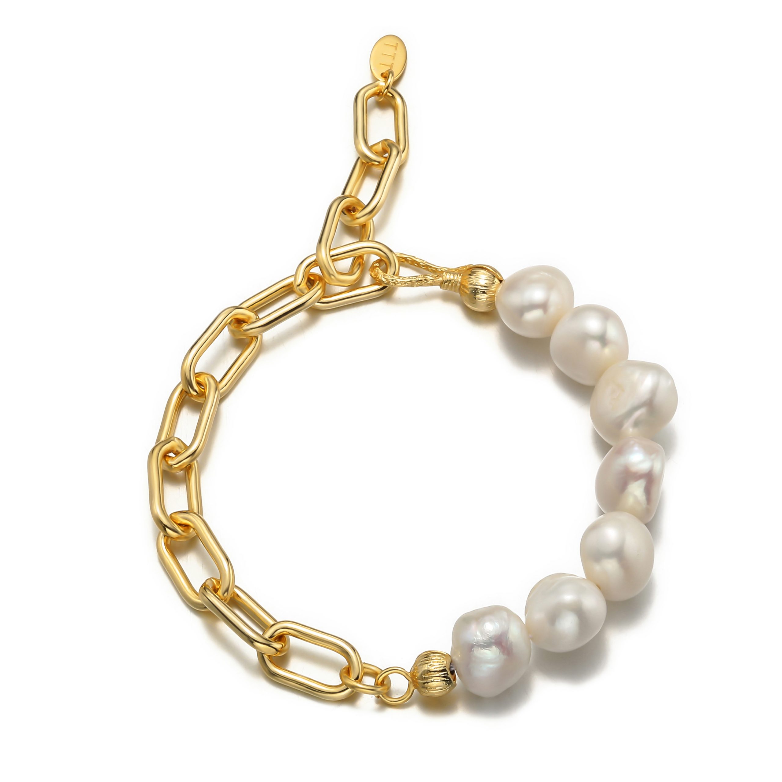 Simplicity meets elegance in artisanjewelry’s link chain pearl bracelet! This stunning combination of premium brass-based chain links plated with 18K and 14K gold and classy freshwater pearls exude an aura of sophistication that is at a level of its own.