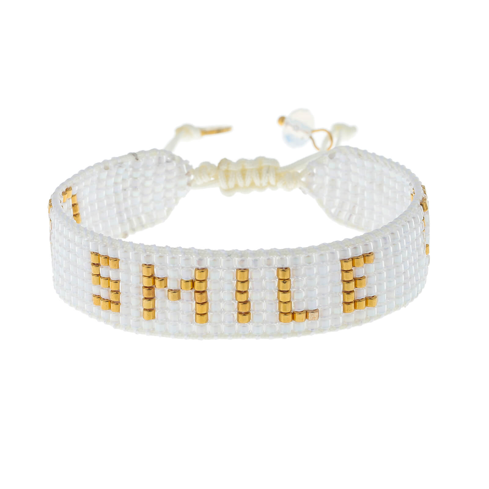 Handmade with our signature Miyuki Delica beads from Japan, this dainty Miyuki Smile Bracelet is perfect for any occasion this beautiful bracelet is made to make you feel happy. Gold and ceramic-white make the most classic color combination.