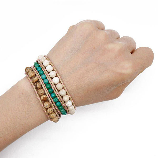 - Material:Natural Stone Beads + Genuine Leather + 304 High Polishing Stainless Steel Curved Clasp