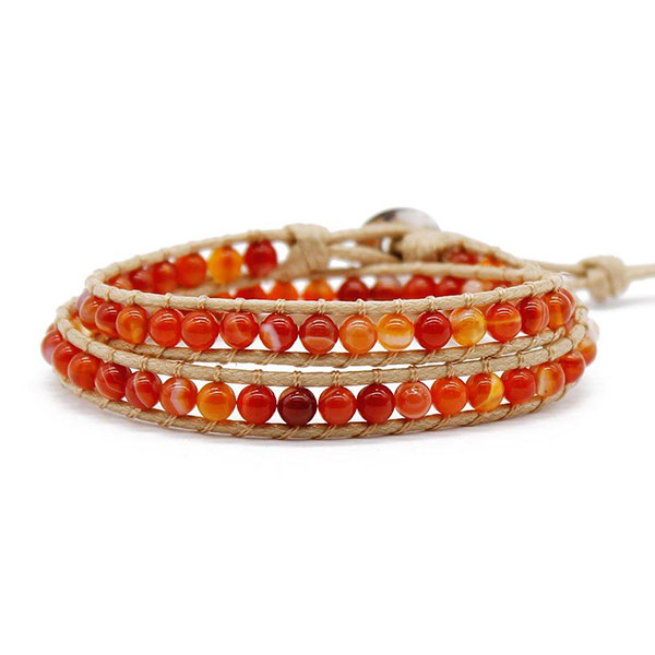 - Material:Red Agate + Wax Cord + 304 High Polishing Stainless Steel Curved Clasp