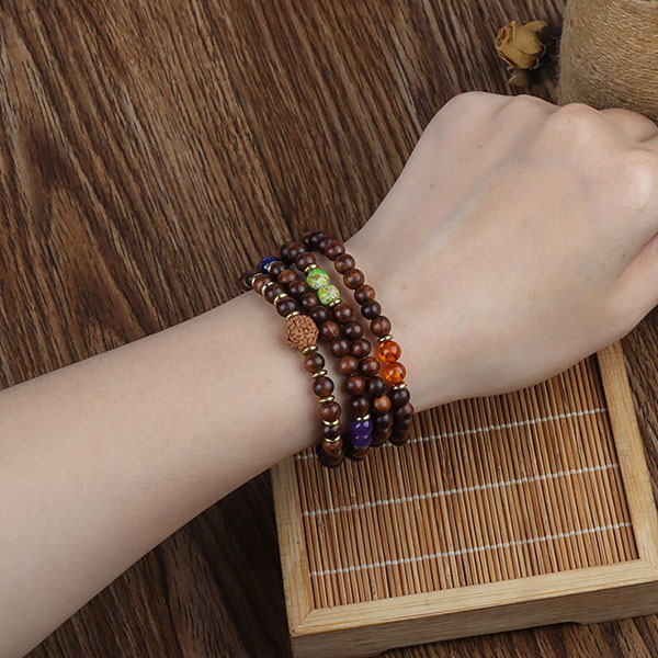- 108 tiger eye beads + 7 chakra decoration beads + rudraksha beads