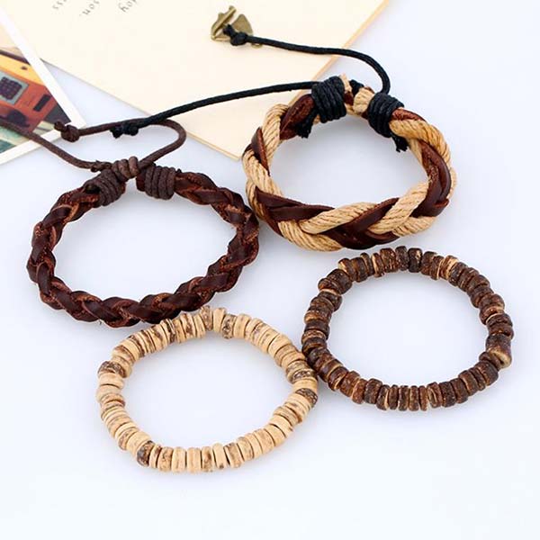 - Material:Genuine leather,wooden beads