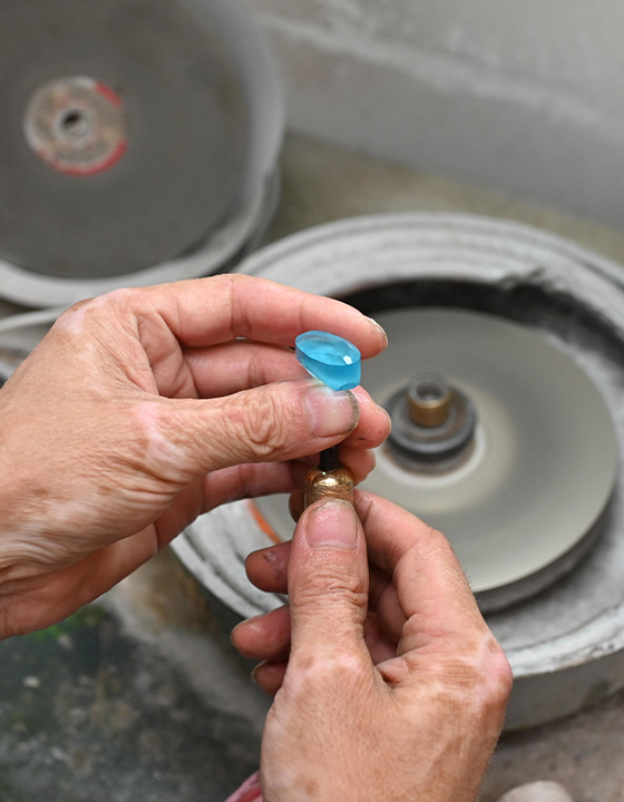 Designers create a 3D model and forward it to the factory, where the craftsmen cut and reshape natural stones based on the specs on the designs.
