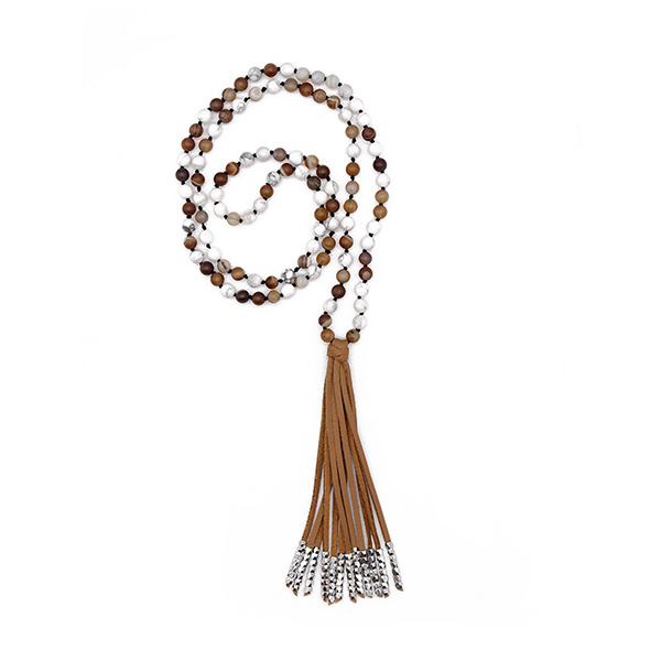 - Material:6mm Natural Amazon Stone Beads + Velvet Tassel + Alloy Beads