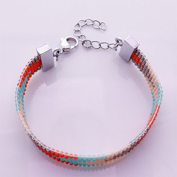 Measuring 6.7 inches in length with a 2-inch extender, the Miyuki bracelet is secured with a silver-filled slide bar clasp.
