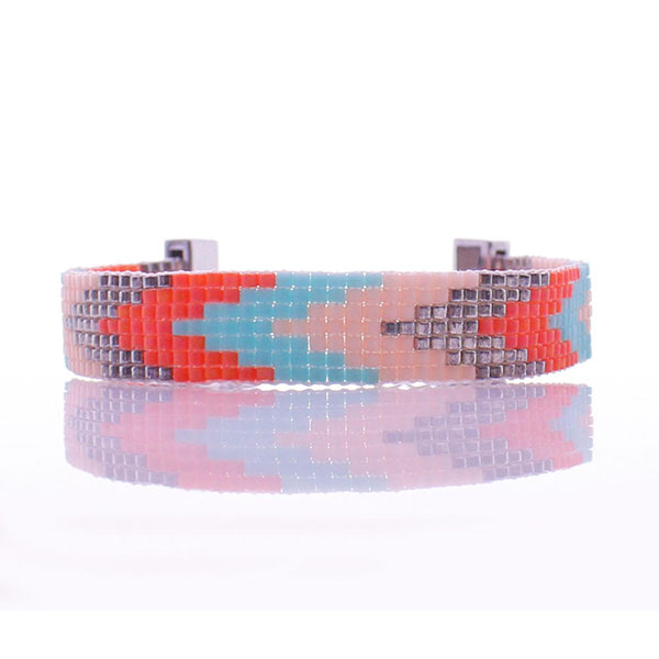 This Miyuki friendship bracelet is hand-crafted from colorful Japanese Miyuki beads in a chevron design with beautiful bright colors. The boho-style Miyuki beaded bracelet is gorgeous on its own or stacked with other bracelets for a playful look.