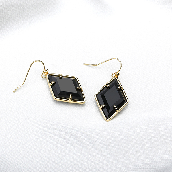 A combination of an elegant and classy look, featuring a diamond-shaped natural Black Opaque Glass on delicate 18K Gold Plated hoops. Classic thick gold–plating provides a durable and timeless appeal.