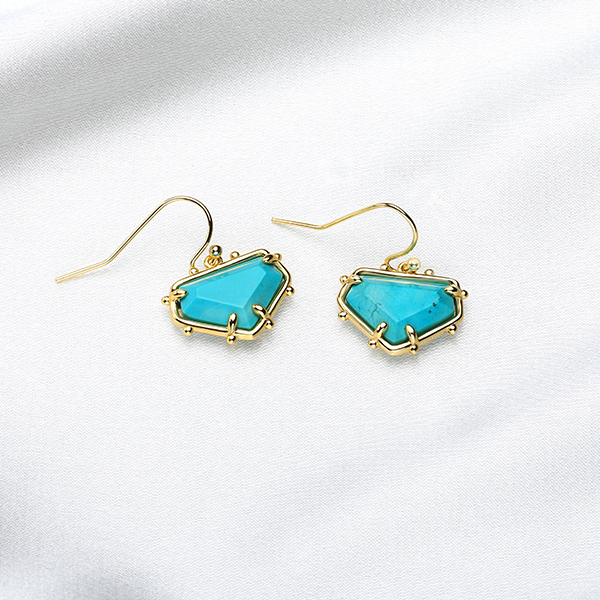Blue Turquoise Gold Drop Earrings