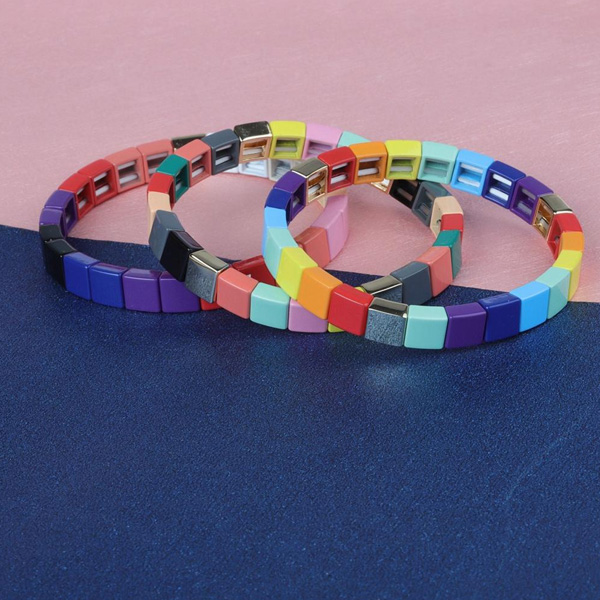 Colorful Square Tile Enamel Bracelet