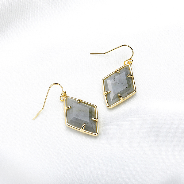Delicate and unique, these earrings have a diamond-shaped natural labradorite stone set inside a protective bezel. The hooks are made from solid brass with a thick layer of 18k real gold plating. The Gold Labradorite Drop Earrings is a sparkling new take on an iconic TTT style we know every woman will love!