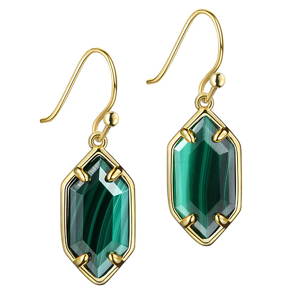 Gold Malachite Drop Earrings