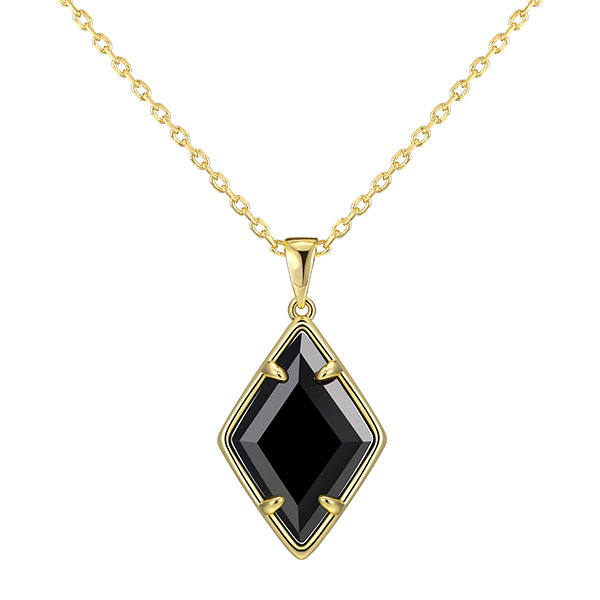 Featuring a diamond-shaped natural Black Opaque Glass stone, our Gold Pendant Necklace is the perfect blend of modern and classic styling! The chain is plated with 18K Gold for authentic luster and shine. Wear it on its own or pair it with other natural stone earrings for a curated look!