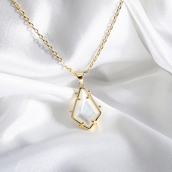The pendant is made of White Glass and White Shell, exclusive, high-quality, and smooth feel, the gold-tone bezel setting makes it even more durable.
