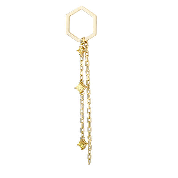 A TTT classic, the geometric hexagon stud earrings in gold-plating are the everyday accessory every woman is searching for. Minimal, modern, bold, and classic all at once, these Gold Plated Citrine Earrings are a coveted addition to your jewelry selection. Fashion in sterling silver with gold vermeil, these earrings glisten with a hexagon-shaped stud design and cascading drop of diamond-cut Citrine stone to shimmer and dance where the light hits.