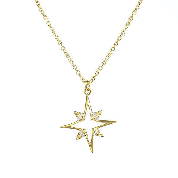 Sparkling with stellar style, this Gold Plated Sterling Silver Cubic Zirconia Starburst Necklace makes any day special. Crafted in 925 sterling silver, this enchanting choice dazzles with a CZ-encrusted starburst. Radiates with lustrous 18k gold vermeil, this design suspends centered along a 17.72-inch link chain that secures with a lobster claw. Starburst measures 0.63″ x 0.63″.