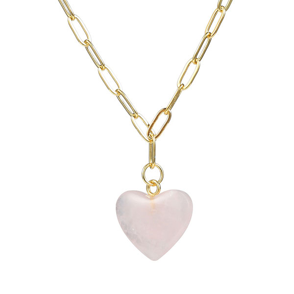 Feminine and classic with a heart-shape design, the minimalist handmade Sterling Silver Necklace in Rose Quartz is our new obsession. The Rose Quartz heart pendant hangs elegantly from a 18K Gold Vermeil sterling silver chain, pale pink with some translucent areas for a unique look. Piece comes with a 925 sterling silver quality stamp as a symbol of guaranteed product quality. Layer it or let it shine on its own!