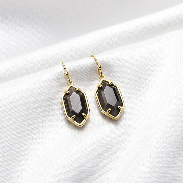 Gold Silver Obsidian Drop Earrings features a hexagon-shaped natural Silver Obsidian stone on delicate 18K gold-plated hoops. Gold-plating and Silver Obsidian make for a powerful combination, the most classic necklace for wearing!