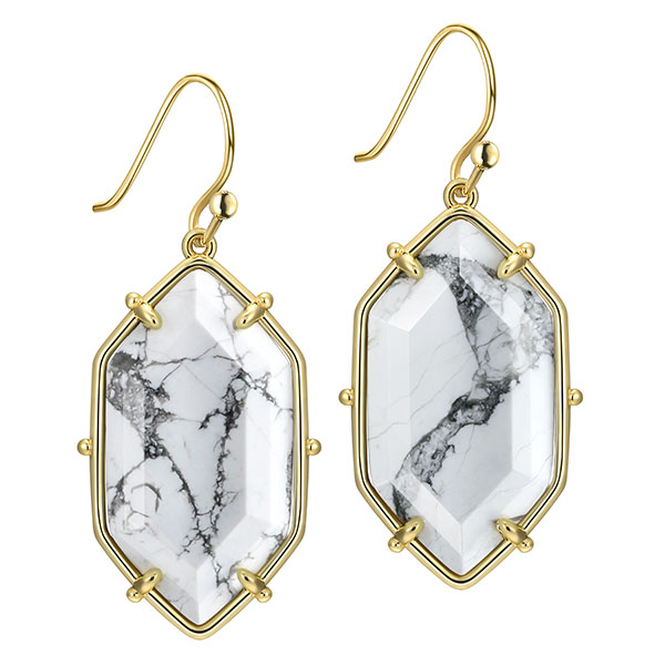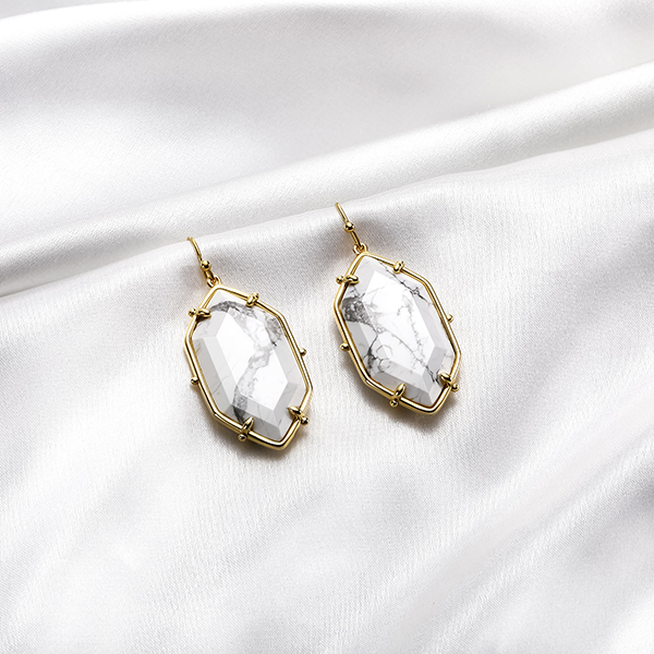Gold White Turquoise Drop Earrings