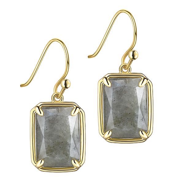 A combination of an elegant and shiny look, this Gray Labradorite Gold Drop Earrings features a natural Labradorite stone on delicate 18K Gold Plated hoops. Thick gold–plating provides a durable and eye-catching appeal.