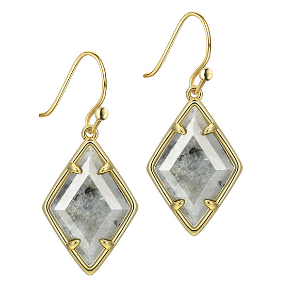Featuring a diamond-shaped Natural Gray Labradorite stone, our Gold Drop Earrings is the perfect blend of modern and classic styling! These hoops are plated with 18K Gold for authentic luster and shine. Wear them on their own or pair them with other natural stone necklaces for a curated look.