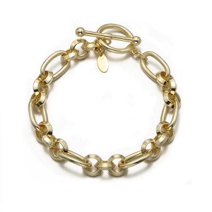Made from the finest gold-plated brass, this necklace features a combination of two smaller link chains and a larger link chain to create a stunning piece of jewelry.