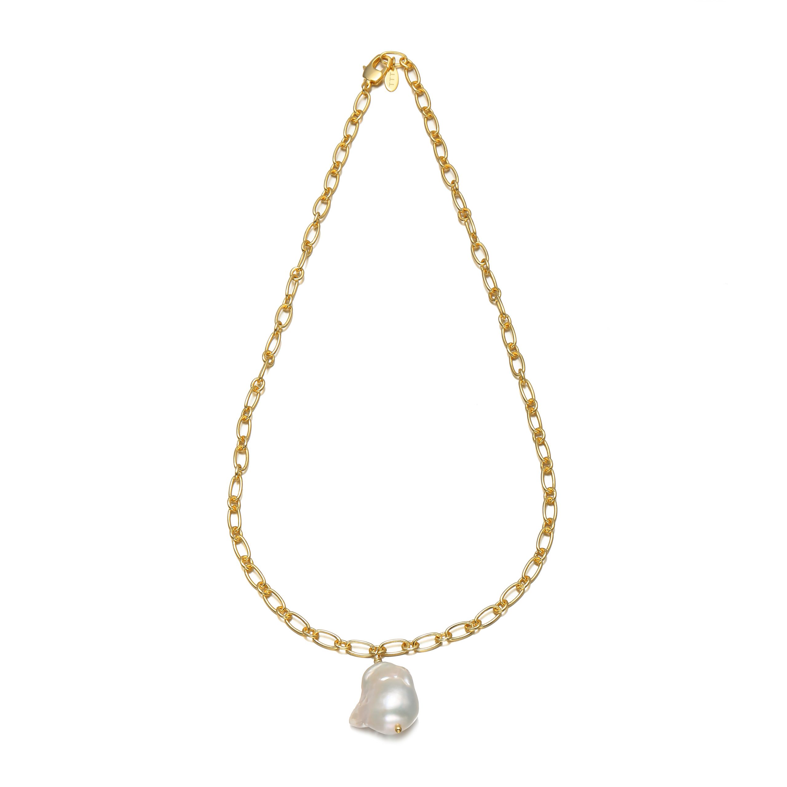 Deliver a lasting statement to your crowd with our extra-large baroque single pearl link chain necklace.