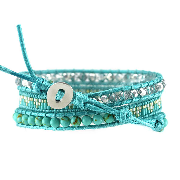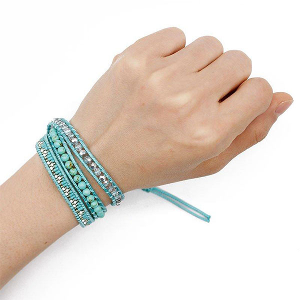 - Material:Miyuki Seed Beads + Turquoise Beads + Crystal Beads + 304 High Polishing Stainless Steel Curved Clasp