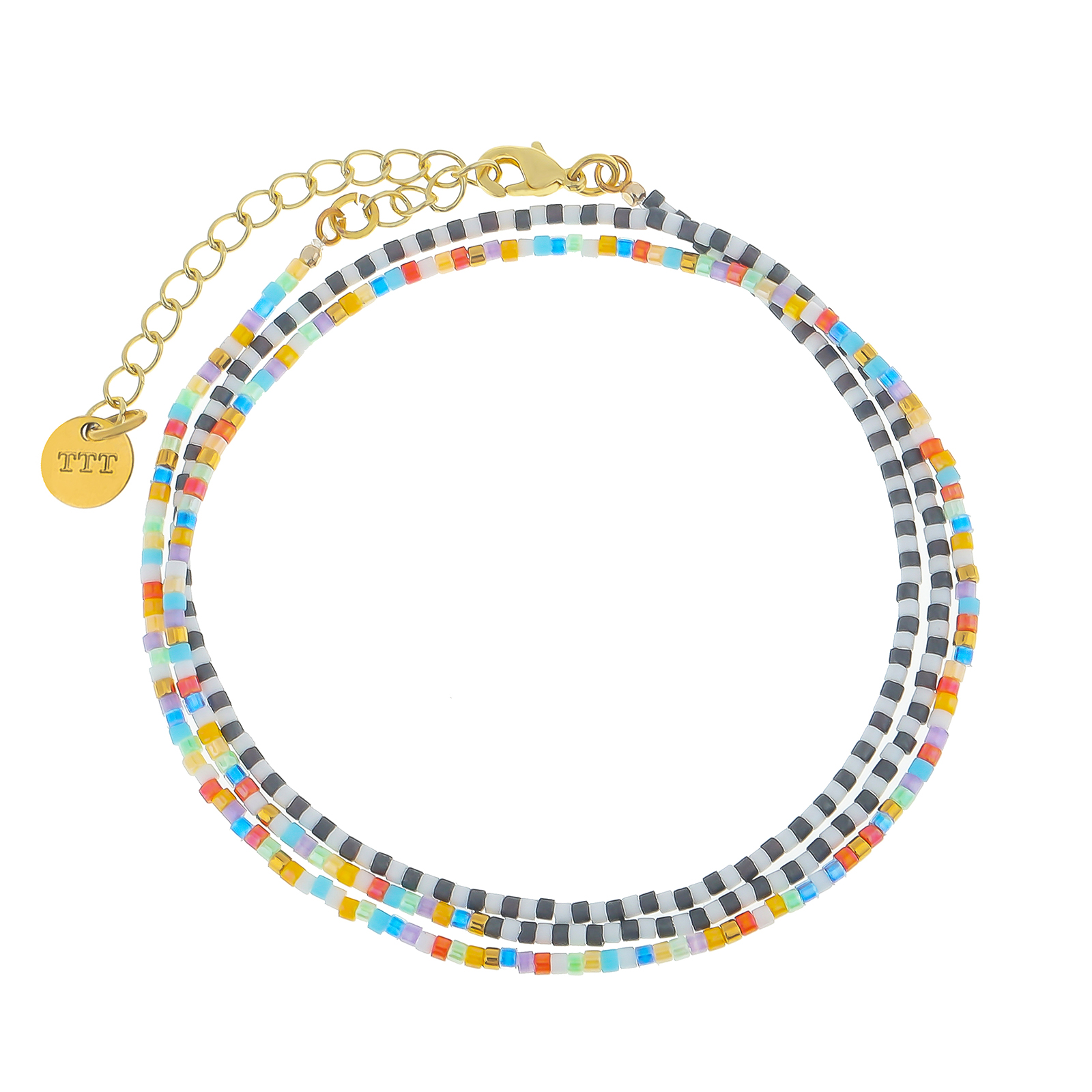 Playful and elegant, this Beaded Wrap Bracelet with 3 layers is made with Japanese Miyuki Delica beads. The beads have a satin look which creates a wonderful glow, the combination of their colors gives a very elegant touch. Rainbow beaded bracelet looks great stacked together and with our Miyuki bead necklace for a unique set.