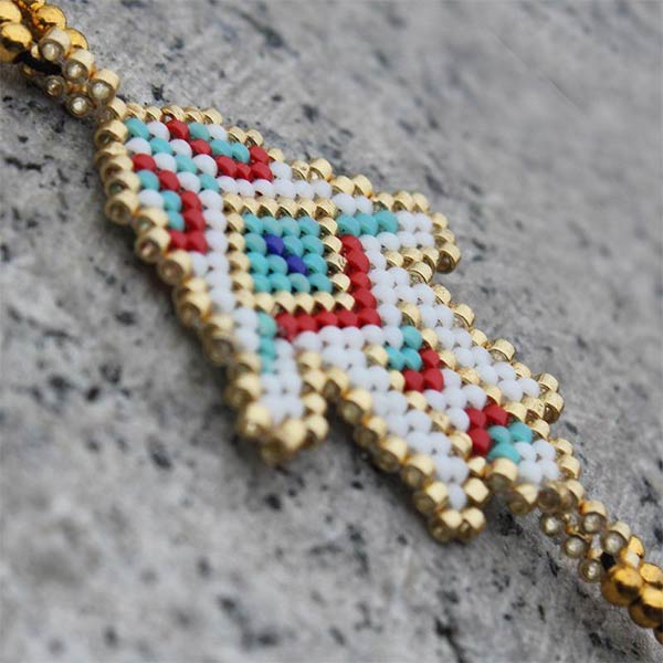 Exclusive and unique adjustable bracelet made with the highest quality Japanese Miyuki beads. The Miyuki Seed Bead Bracelet with multi-colored palm charm makes the perfect addition to a bracelet stack, and glows brightly when on its own.