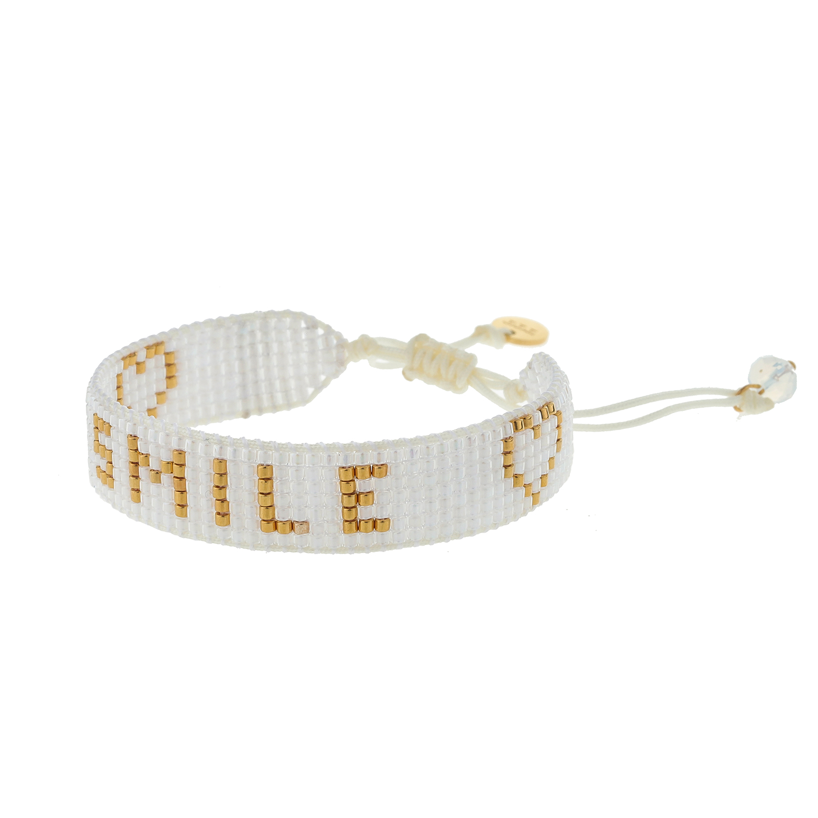 Handmade with our signature Miyuki Delica beads from Japan, this dainty Miyuki Smile Bracelet is perfect for any occasion this beautiful bracelet is made to make you feel happy. Gold and ceramic-white make the most classic color combination.
