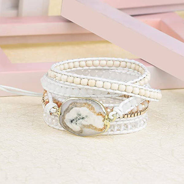 The bracelet is designed to wrap around 4-5 times (depending on your wrist size), LENGTH AROUND 35.4″ / 36.6″ / 37.7″ , can be adjustable to 3 sizes with a unique alloy clasp to secure, would fit for almost sizes hands.