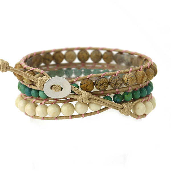 - Material:Natural Stone Beads + Genuine Leather + 304 High Polishing Stainless Steel Curved Clasp
