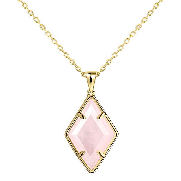 Combining quality materials and exquisite craftsmanship, we create this diamond-shaped Rose Quartz Gold Pendant Necklace. One size fits most with an extender. Made with care in every single detail, and guarantee a very high performance without wearing effect of time.