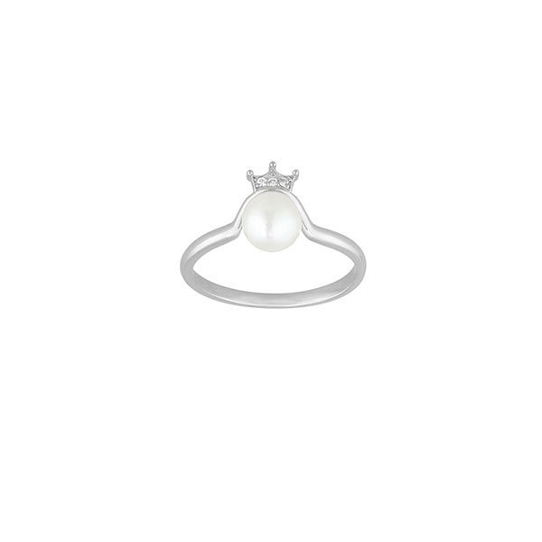 Featuring a lustrous freshwater pearl topped by a row of shimmering clear Cubic Zirconia stones sitting in a crown-shaped setting. Hand-crafted using luxurious Platinum Vermeil sterling silver, our Sterling Silver Cubic Zirconia Crown Pearl Ring is perfect worn on its own or paired with our sterling silver Cubic Zirconia Crown Pearl Necklace as a stunning set!This ring is available in whole sizes 4-15 (US size)