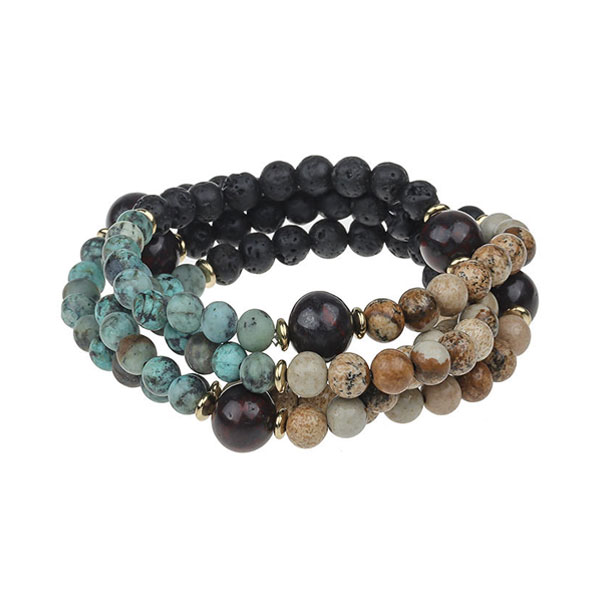 - 108 bead 8mm japa mala bracelet with Green Turquoise Beads, Lava Stone