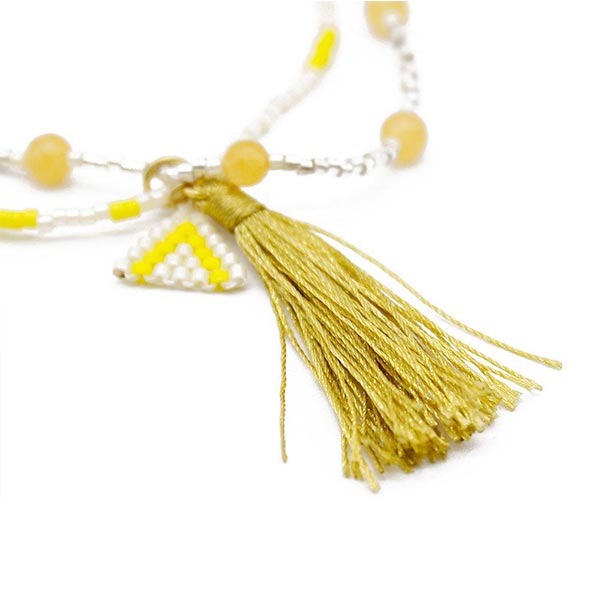 - Materials: Japanese Miyuki Delica Beads, Tassel, Yellow Jade